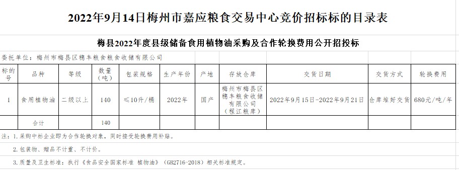 梅縣2022年度縣級儲備食用植物油采購及合作輪換費用公開招投標(biāo)公告