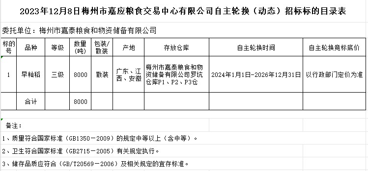 梅州市2023年度市級(jí)儲(chǔ)備糧自主輪換公開(kāi)招投標(biāo)公告