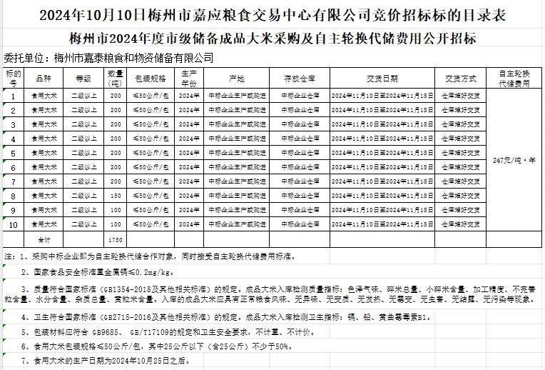 梅州市2024年度市級儲備成品大米采購及自主輪換代儲費用公開招標公告