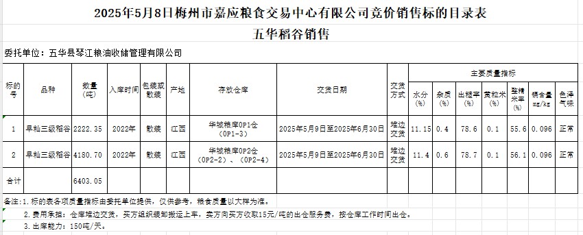 三、交易資格:在梅州市嘉應糧食交易中心有限公司成功報名并提供單位有關資料的單位。