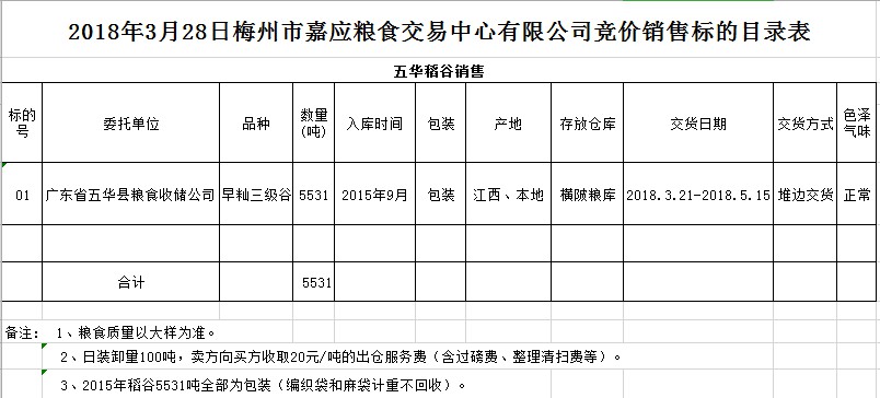 交易時(shí)間和地點(diǎn):2018年3月28日(星期三)下午15時(shí)30分。廣東省梅州市彬芳大道南161號(hào)梅州市糧食交易中心3樓。